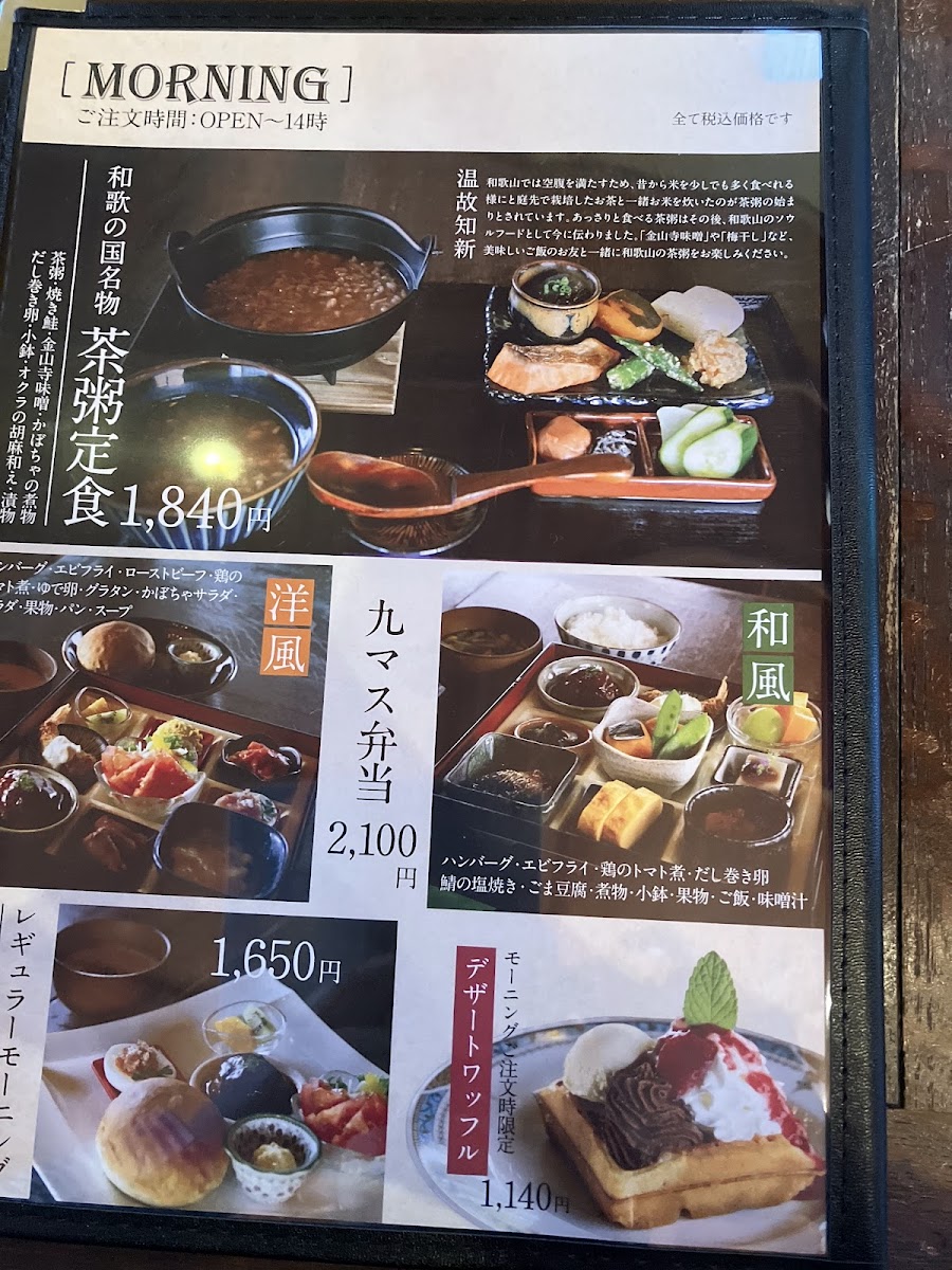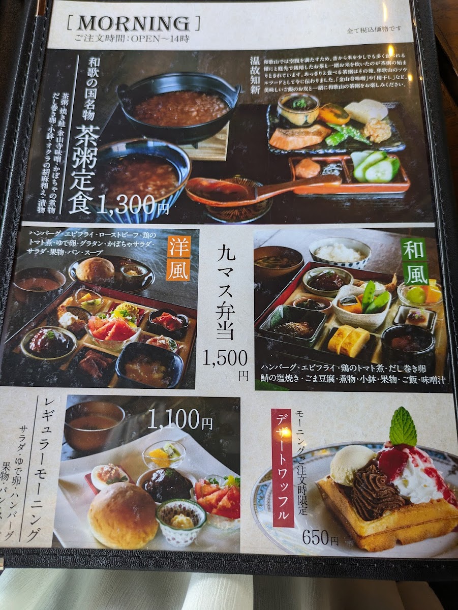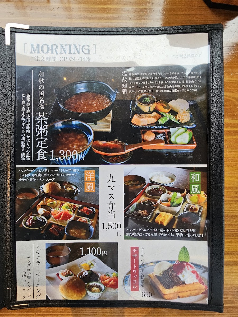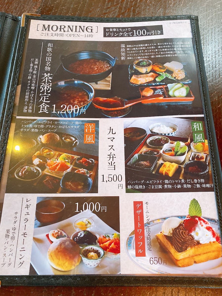 The menu at Junkissa Lierre offers a delightful blend of traditional and modern flavors, with a special focus on waffles and coffee. One standout dish is the 湯浅 醤油 の みたらし ワッフル と コーヒー, which combines the unique flavor of Yuasa soy sauce with a savory waffle, paired perfectly with a cup of coffee. For those craving something more substantial, the 和食九マス弁当 presents a beautiful assortment of traditional Japanese dishes, making it an excellent choice for a filling meal. If you're looking for a simple but satisfying option, the プレーンワッフル is a classic treat that never disappoints, offering the comforting taste of a plain waffle. The 茶粥定食 is another great choice for a lighter, more health-conscious meal, featuring a comforting bowl of tea porridge. For beverages, the restaurant serves refreshing options like アイスコーヒー 550円 and アメリカン コーヒー 550円, perfect for pairing with any dish. The ワッフルset is an ideal option for waffle lovers, allowing you to enjoy the restaurant’s signature waffles with a variety of toppings. With such a diverse menu, Junkissa Lierre offers something for every palate, whether you're in the mood for something savory, sweet, or refreshing.