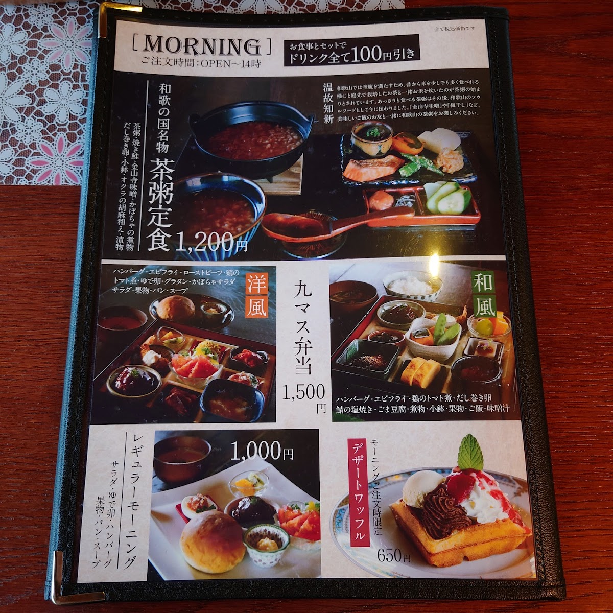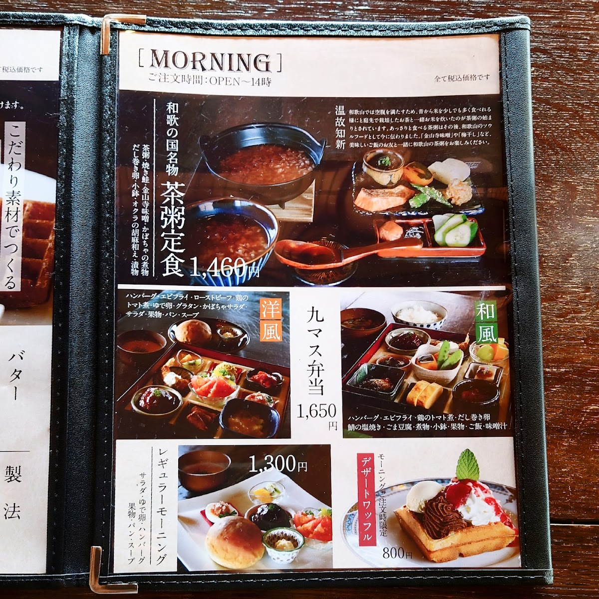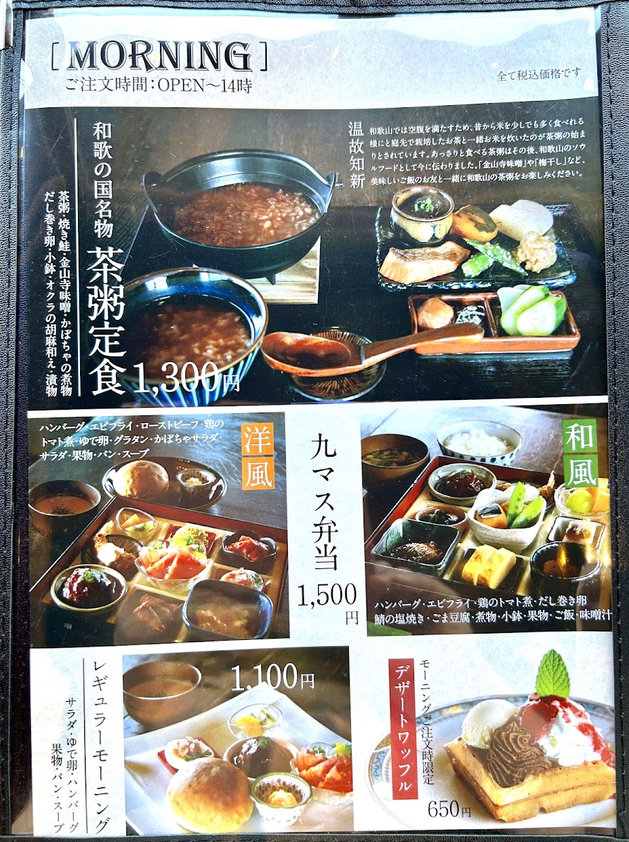 The menu at Junkissa Lierre offers a delightful blend of traditional and modern flavors, with a special focus on waffles and coffee. One standout dish is the 湯浅 醤油 の みたらし ワッフル と コーヒー, which combines the unique flavor of Yuasa soy sauce with a savory waffle, paired perfectly with a cup of coffee. For those craving something more substantial, the 和食九マス弁当 presents a beautiful assortment of traditional Japanese dishes, making it an excellent choice for a filling meal. If you're looking for a simple but satisfying option, the プレーンワッフル is a classic treat that never disappoints, offering the comforting taste of a plain waffle. The 茶粥定食 is another great choice for a lighter, more health-conscious meal, featuring a comforting bowl of tea porridge. For beverages, the restaurant serves refreshing options like アイスコーヒー 550円 and アメリカン コーヒー 550円, perfect for pairing with any dish. The ワッフルset is an ideal option for waffle lovers, allowing you to enjoy the restaurant’s signature waffles with a variety of toppings. With such a diverse menu, Junkissa Lierre offers something for every palate, whether you're in the mood for something savory, sweet, or refreshing.